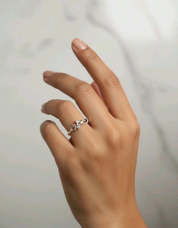 Elegant Silver Flower Design Ring for Women | Adjustable Diamond Style Finger Ring