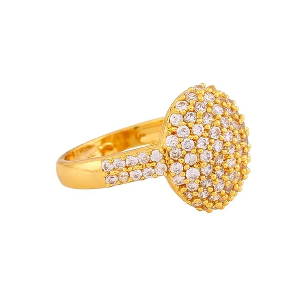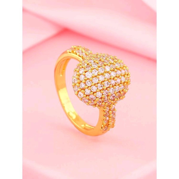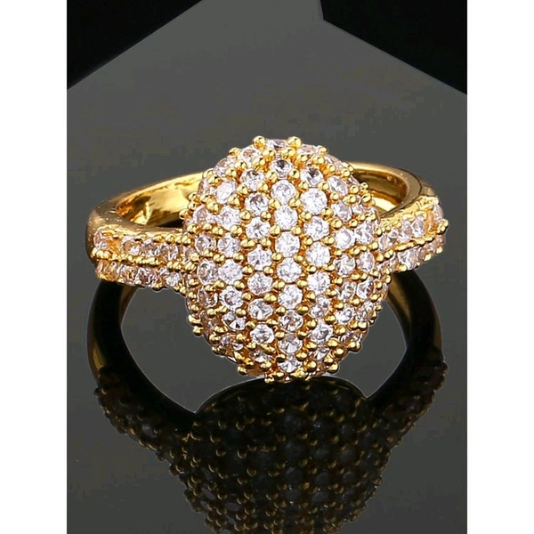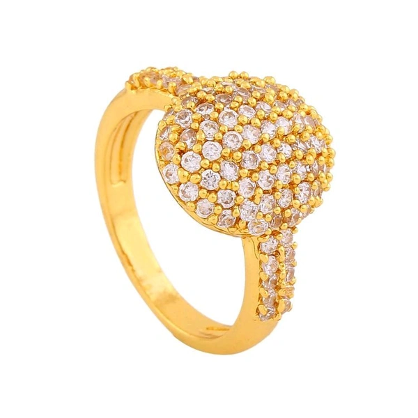 Gold Plated Cz Round Shaped Crystal Studded Finger Ring For Girls/Women