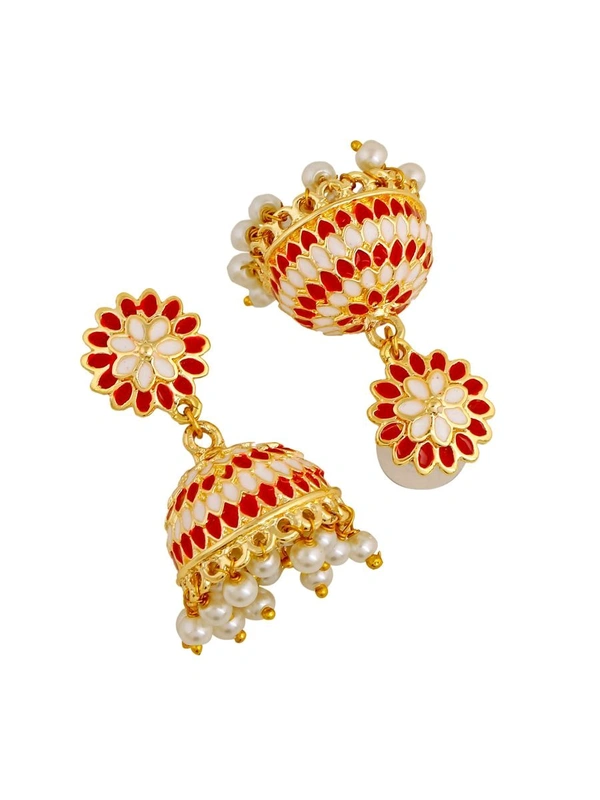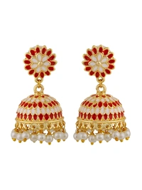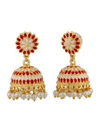 Gold Tone Graceful Meenakari Jhumki Earrings with Pearls for Women