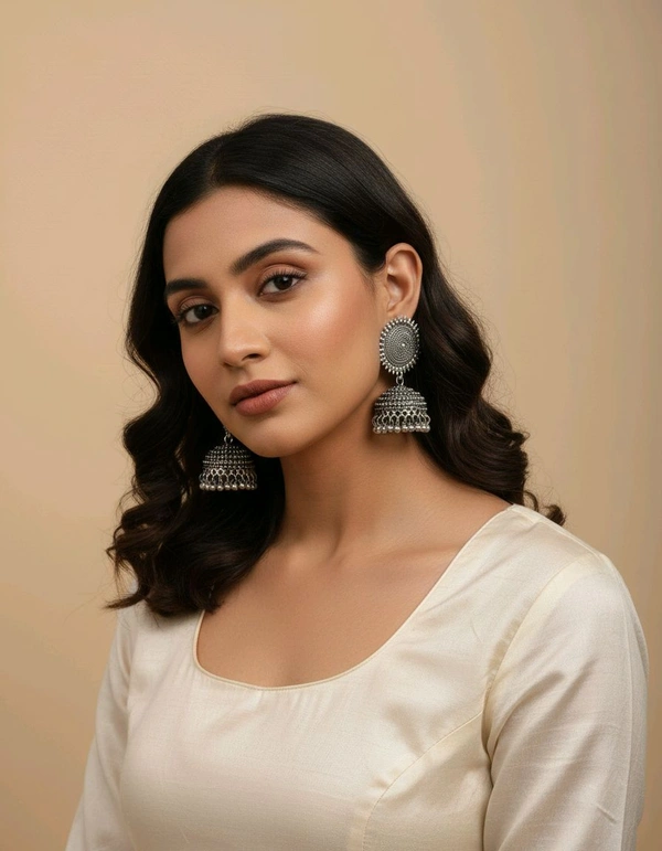 - Exquisite Design: Featuring a beautiful oxidized silver finish, these round stud jhumkas exude traditional charm while offering a contemporary edge.