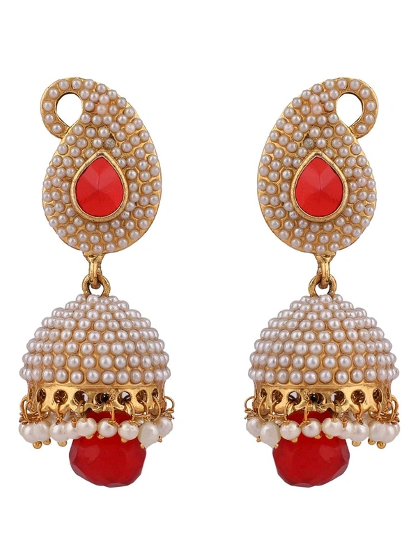 Complete your look with the Pearl Embedded Partywear Jhumki Earrings today. Shop now and let your style shine!