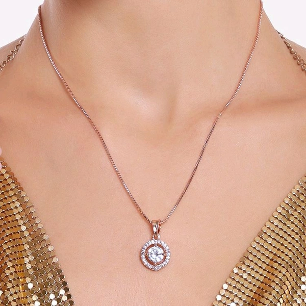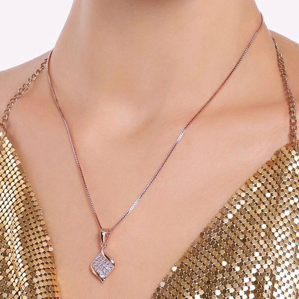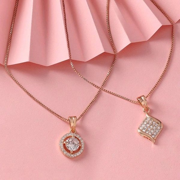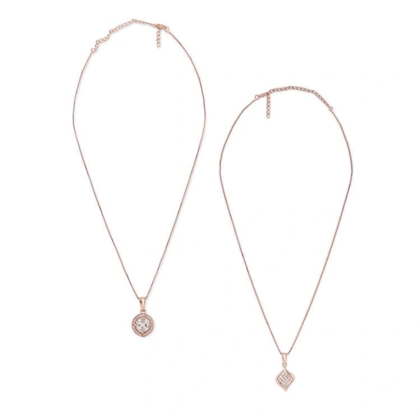 Set of 2 Rose Gold Contemporary Cubic Zirconia Pendant Chains by Glevcare