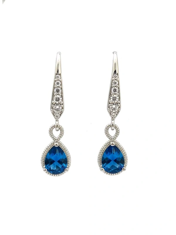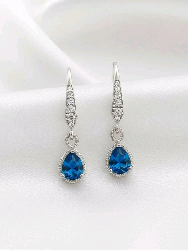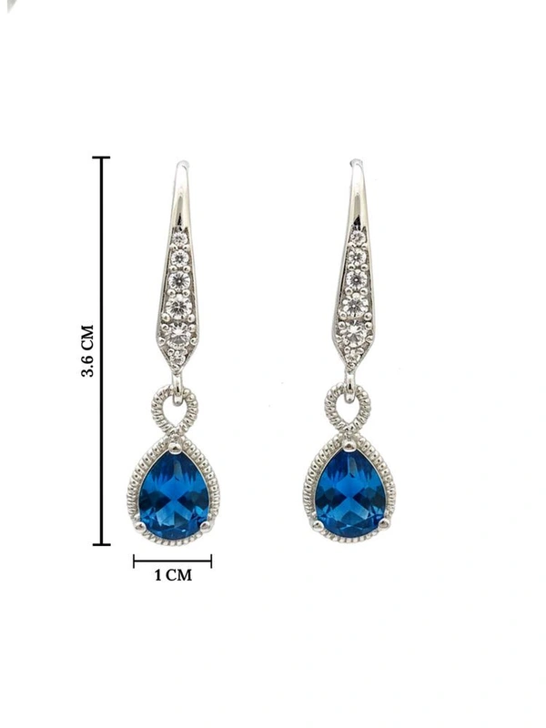 Designed with attention to detail, these earrings feature a radiant blue cubic zirconia centerpiece, beautifully complemented by a silver-plated finish for a luxurious touch. Whether you're dressing up for a formal event or adding a touch of glamour to your everyday look, these earrings are a must-have addition to your jewelry collection.
