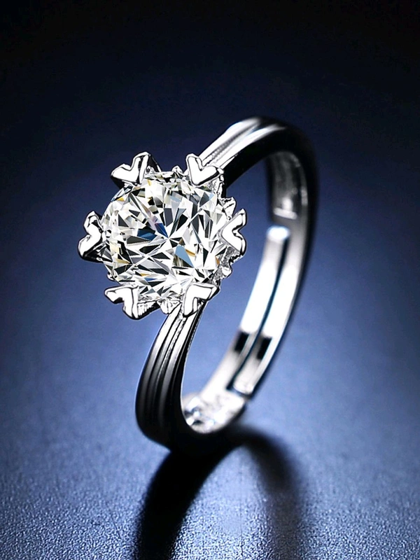 Experience Elegance with the Silver Plated Crystal Studded Solitaire Adjustable Ring