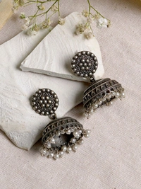 Elevate Your Style with Witch Zarna Silver Oxidised Jhumki Earrings