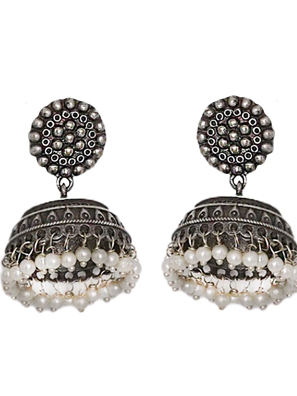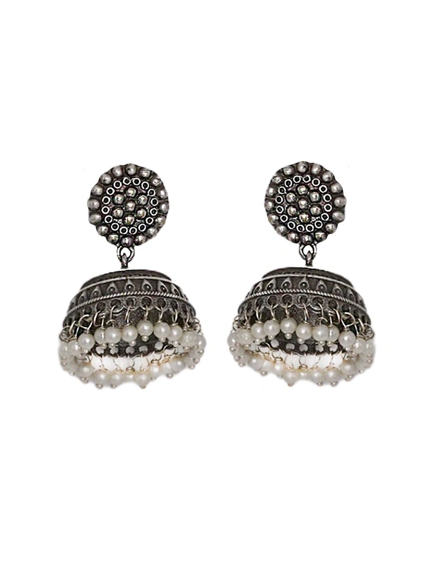 Witch Zarna Silver Oxidised Jhumki Earrings for Women