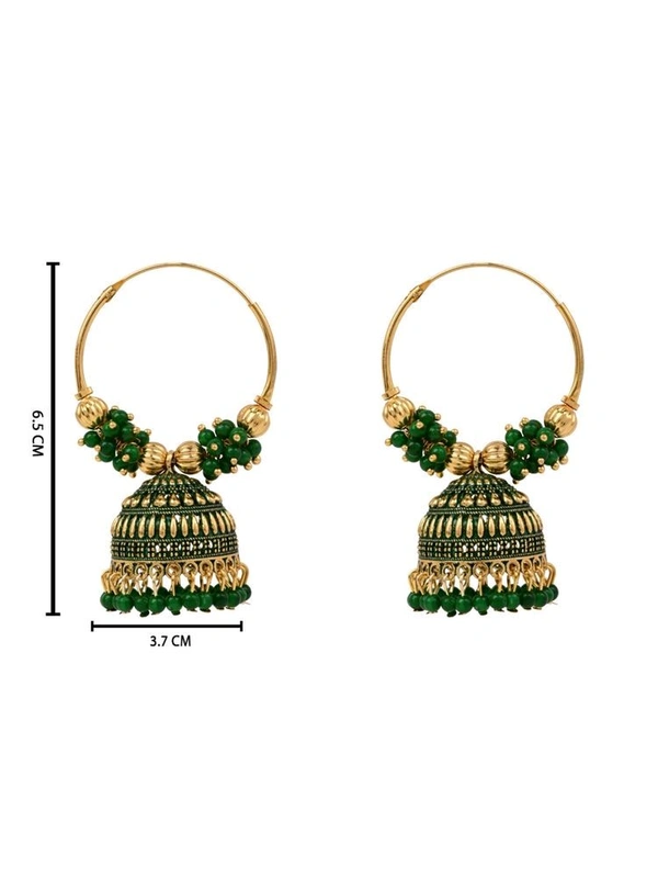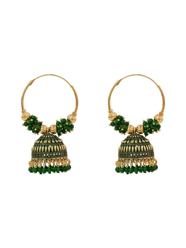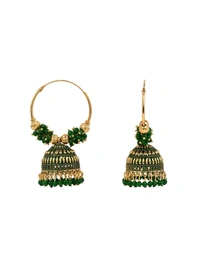 Elevate Your Elegance with Green and Gold-Plated Beaded Traditional Jhumkas Earrings