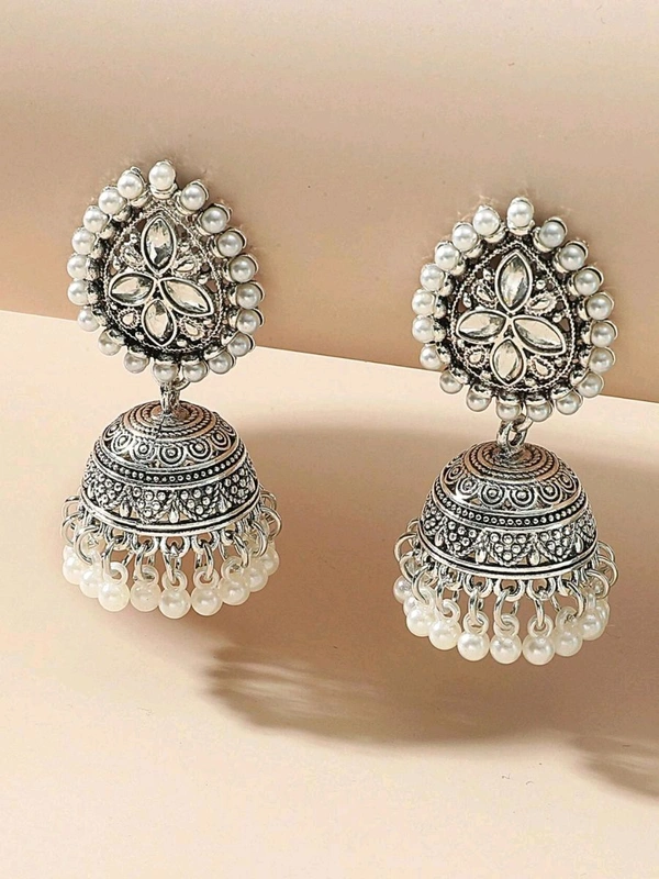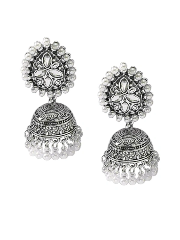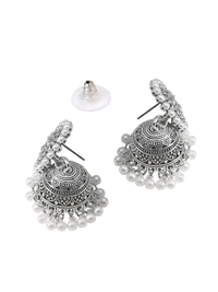 Jewellery Oxidised Silver Pearls Ethnic Jhumka Earrings