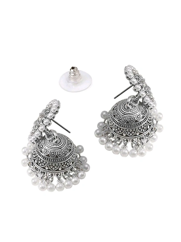 Jewellery Oxidised Silver Pearls Ethnic Jhumka Earrings – Elegance Redefined