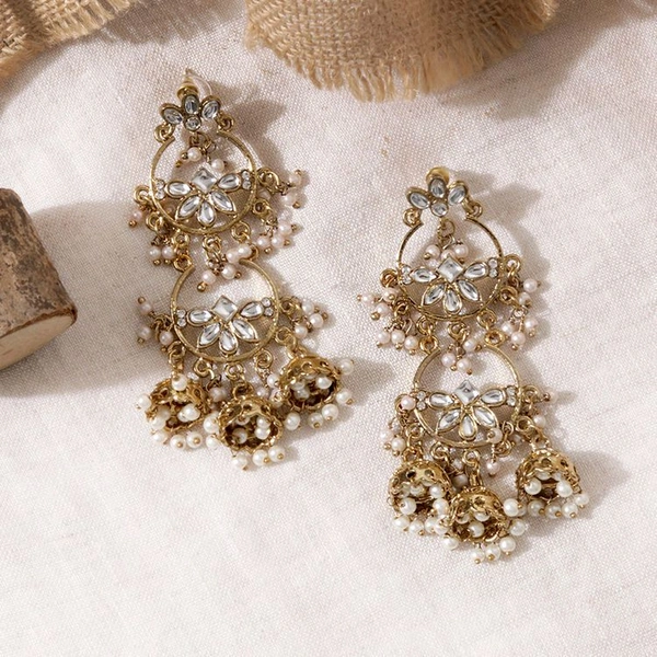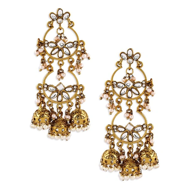 Wedding Ethnic Gold Kundan Drop Earrings For Women